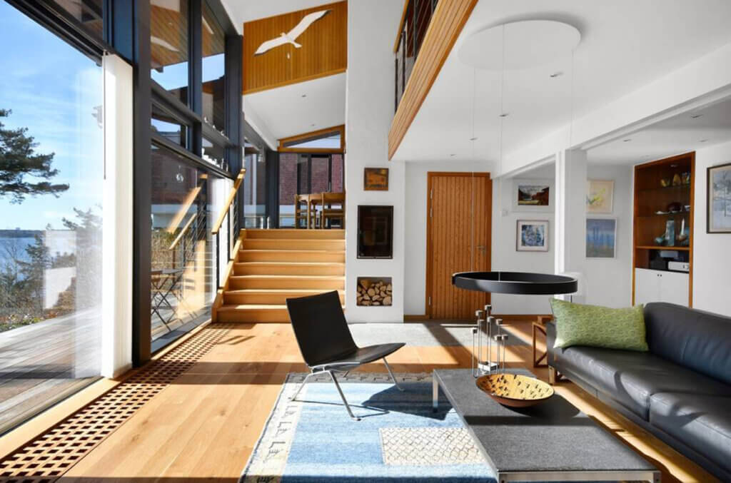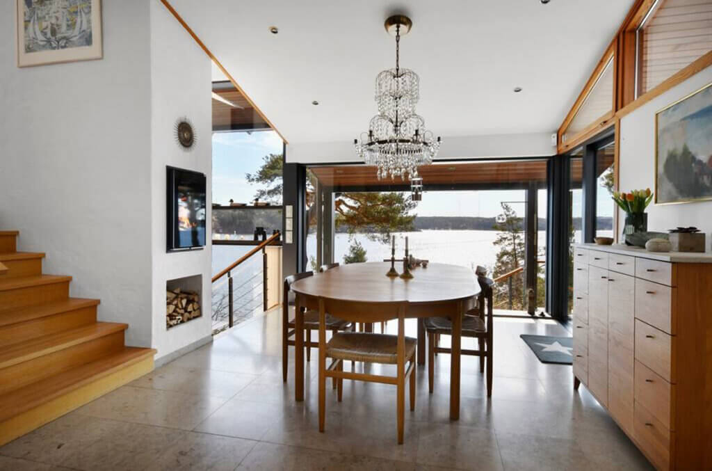 På en sluttande sjötomt med direktkontakt med vattnet ligger Sjöstigen 8, som lockat över 30 000 besök i veckan. Huset, ritat av arkitektduon Von Hut och Turner, uppfördes 1960 och har genom åren varsamt uppdaterats – samtidigt som den tidstypiska karaktären bevarats. Fasaden i cederträ och glaserat tegel ger ett tydligt uttryck, medan de stora glaspartierna suddar ut gränsen mellan inne och ute.