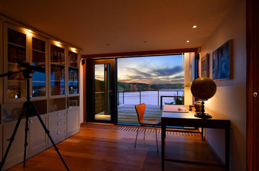 Utsikten över Stockholms inlopp är ständigt närvarande och präglar hela hemmet. Från entréplanet, med sin unika överblick, till det sociala våningsplanet där golv-till-tak-fönster ramar in vattnet, är läget en central del av upplevelsen. Här finns generösa sällskapsytor, bibliotek och flera rum för både avkoppling och umgänge.